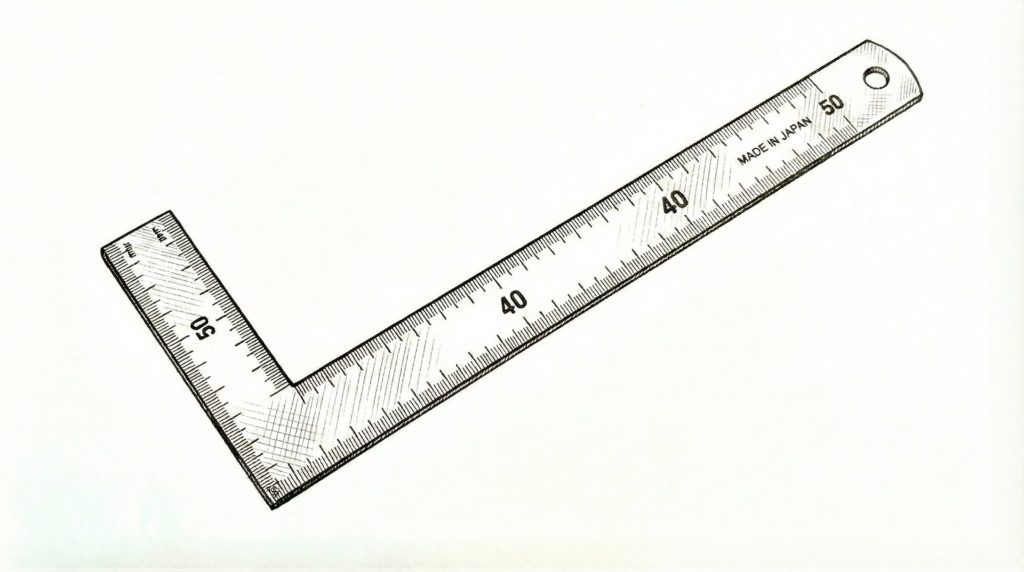 ・さしがね(L字型の定規。直角を出すために必須です)